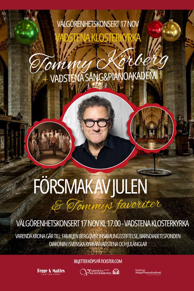 All proceeds for the concert go in full to Familjen Bergqvist insamlingsstiftelse,Barndiabetesfonden, Diakonin i Svenska kyrkan Vadstena and Julänglar.